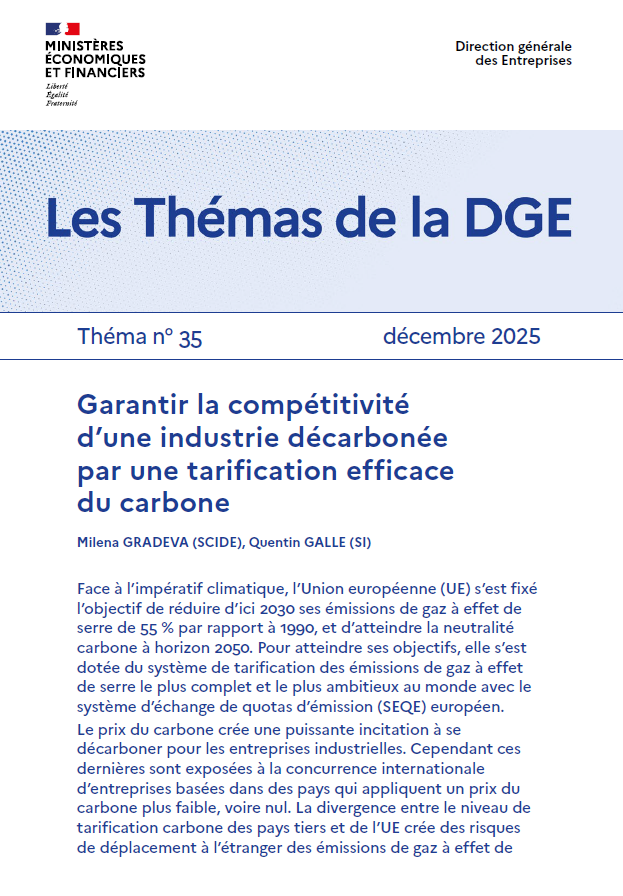 « Les Thémas » de la DGE est une collection qui vise à apporter une analyse économique et un éclairage synthétique sur les politiques publiques relevant du champ de compétence de la Direction générale des Entreprises.