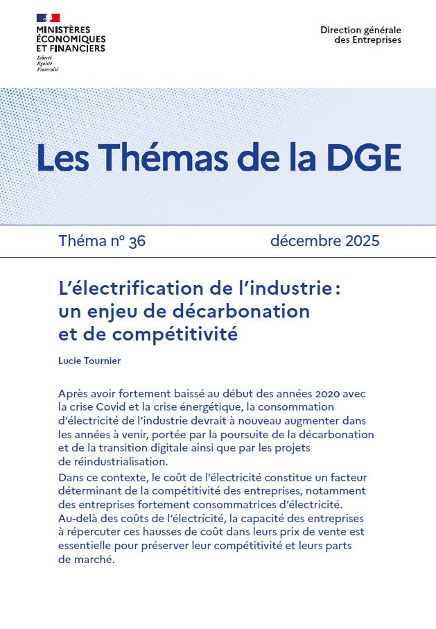 « Les Thémas » de la DGE est une collection qui vise à apporter une analyse économique et un éclairage synthétique sur les politiques publiques relevant du champ de compétence de la Direction générale des Entreprises.
