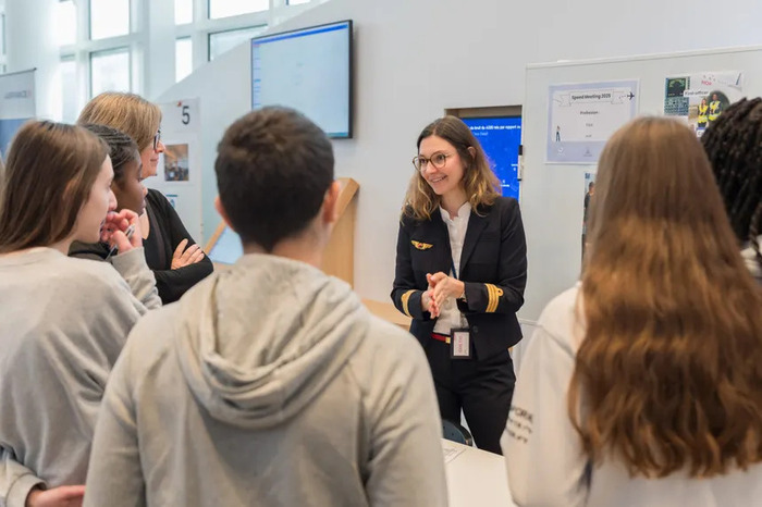 Les intervenants de chaque entreprise présentent leurs métiers en anglais, langue internationale de travail à l'aéroport